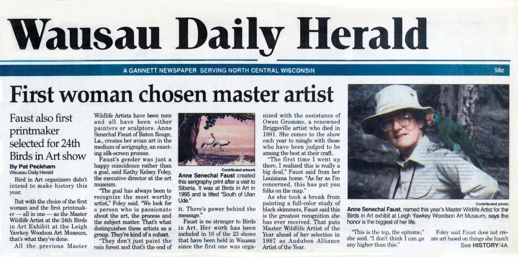 Anne Senechal Faust is honored as the first woman to be awarded Master Wildlife Artist title.