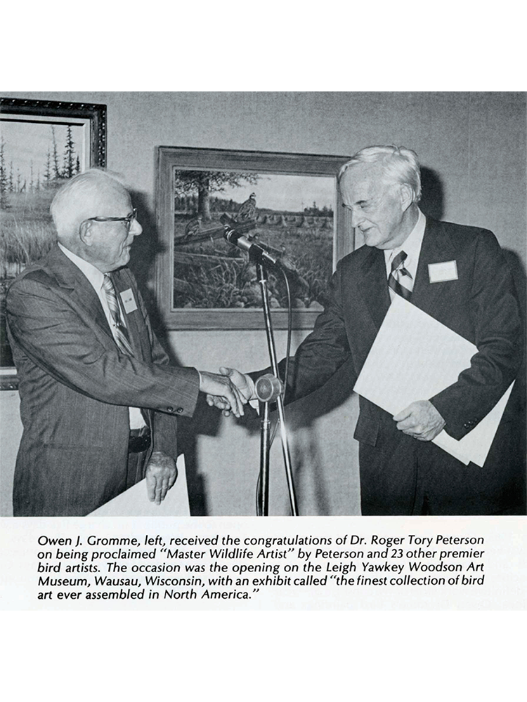 Birds of the Lakes, Fields, and Forests, the seminal exhibition that became what we know today as Birds in Art opened in September. The exhibition was the suggestion of the Woodson family’s respected friend, Owen J. Gromme, who that year was named Master Wildlife Artist.