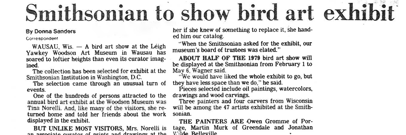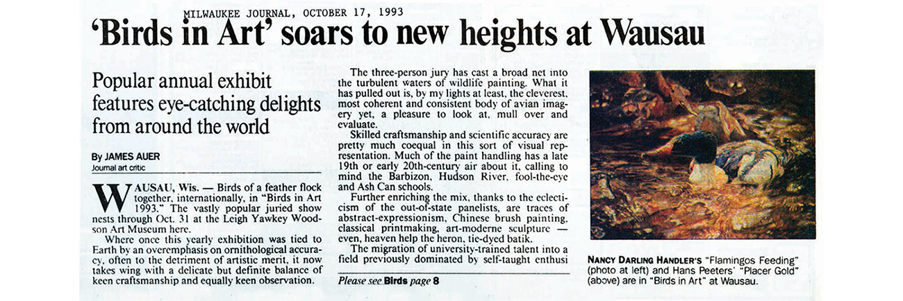 Birds in Art receives praise from all around the world . . . from Wausau to China—to Japan—to the Smithsonian Institute in Washington D.C.—to the Royal Scottish Academy.