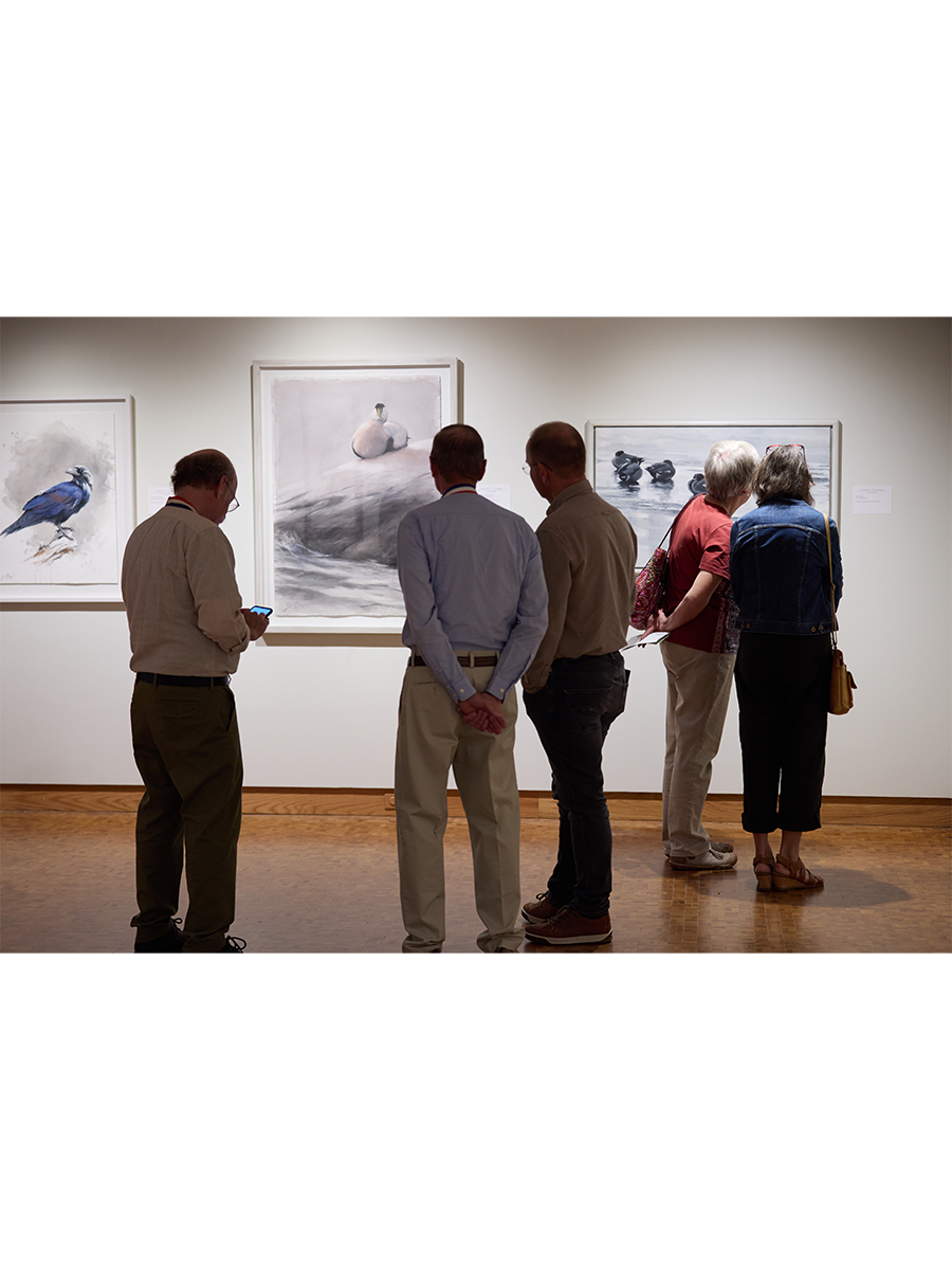 In the fifty years the Birds in Art exhibition has been held, over 1,150 artists from around the work have exhibited over 5,000 artworks. These artists have represented forty-six states and thirty-two countries including those from Canada, England, Sweden, Japan, Germany, India, Peru, and the Netherlands, to name a few.