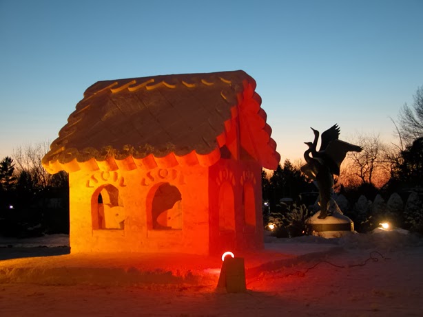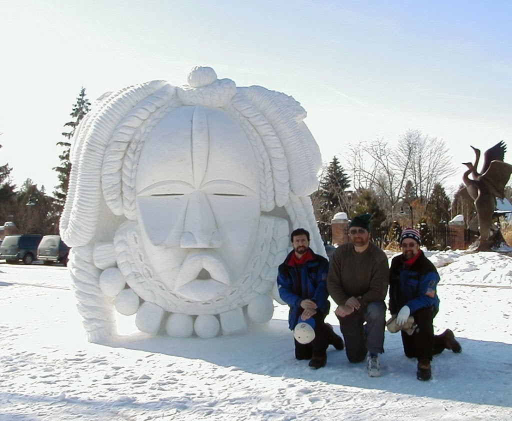 Although they may seem to materialize from thin air and a sprinkling of pixie dust, these ephemeral wonders emerge because of the sculptors’ talents, experience, and efforts. Mike Martino, Tom Queoff, and Mike Sponholtz originally met while all were art students at the University of Wisconsin-Milwaukee. Queoff, who’s run a sculpture studio in Milwaukee since 1978, assembled the team a year after he was asked to judge the first U.S. National Snow Sculpting Competition in 1985. Since then, the team has created about 200 snow sculptures and competed in the 1998 Olympics.