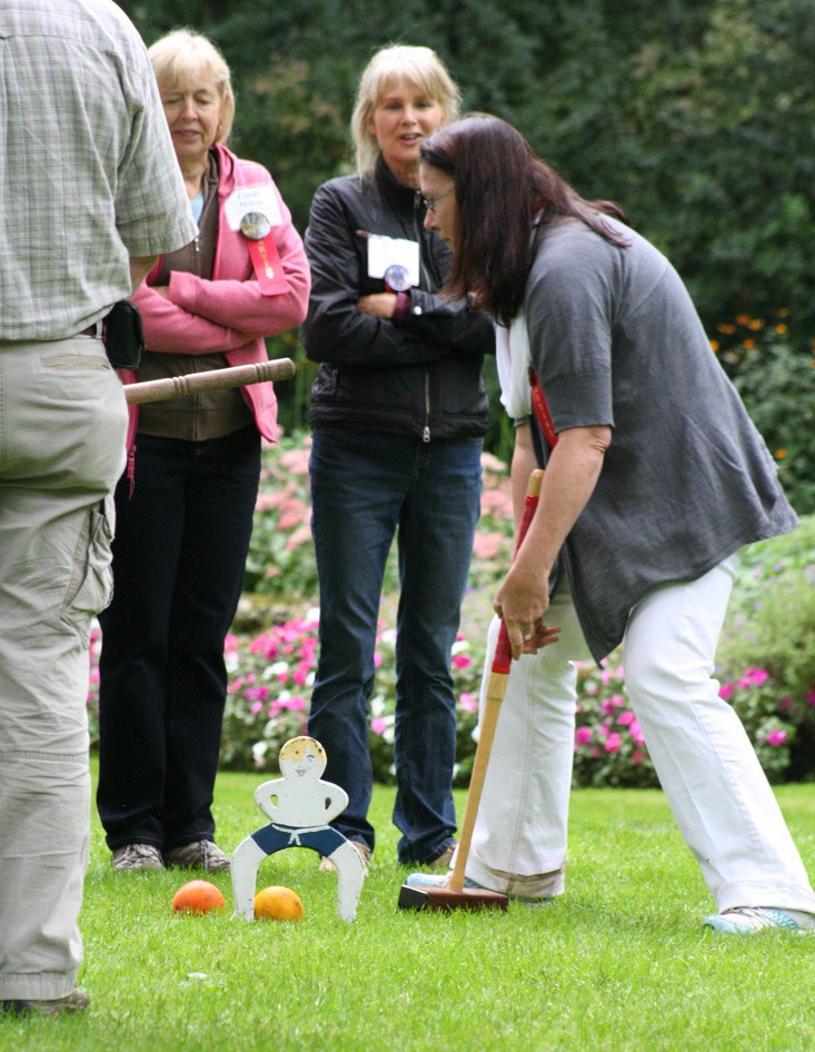 The tradition of Birds in Art artists playing croquet began innocently many years ago. Artists travel north to Hazelhurst each year after Saturday morning Museum appearances. This annual retreat allows artists to spend time with one another in a relaxed atmosphere. Activities include boat rides, swimming, nature walks, and a few sporting events, all available to help break the ice and encourage relaxation.
