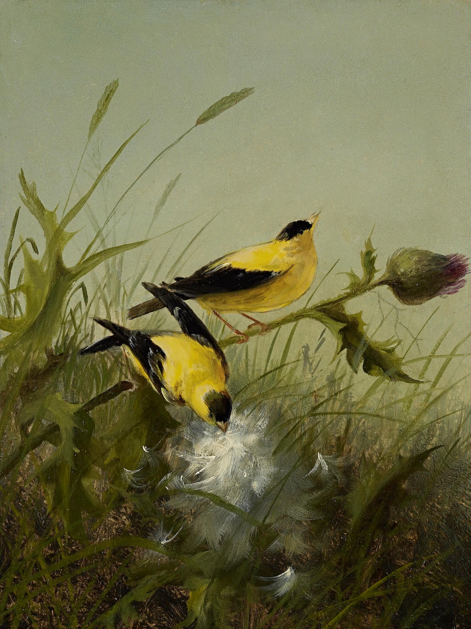 Fidelia Bridges, Goldfinch and Thistle, ca. 1865, oil on canvas, Museum purchase with funds provided by the John and Alice Forester Charitable Trust