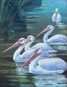 Elisabeth Fulda, Five Pelicans, 1925, oil on canvas, Museum purchase with Tribute Funds