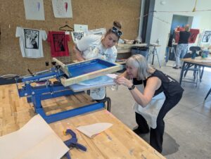 Picture it: The Glass Box Studio. 2025. A young group of Museum educators open the doors for a day of screen printing. The red clotheslines were heavy with t-shirts for the online store. After hours (okay it was only like forty-five minutes) of grueling ironing (fine there was calm piano music playing), the educators finally welcomed volunteers into the space. For the next two hours, the studio was filled with laughter, joy, and hearty discussions of the Brewers’ chances in the playoffs.