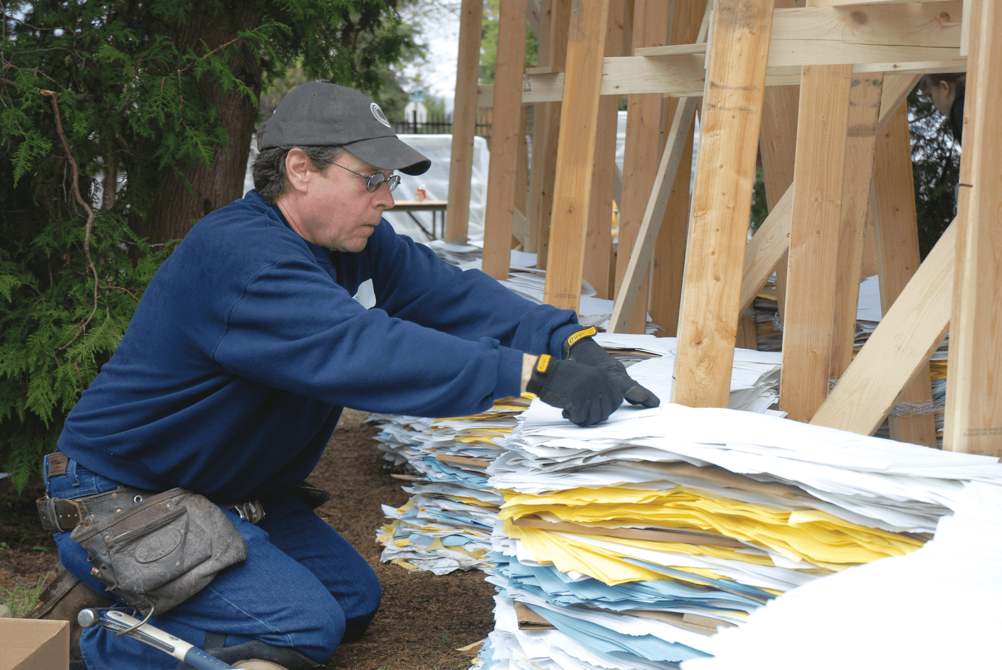 I was lucky enough to be accepted as a member of the volunteer team working on Steven Siegel’s 2011 site-specific paper sculpture at the Woodson Art Museum. That was 15 years ago. I never left. Until now.