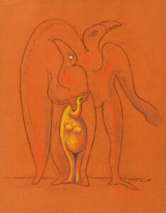 Max Ernst, The Bird People, 1942, pastel, charcoal, and frottage on toned paper, Museum purchase with funds provided by the Nancy Woodson Spire Foundation